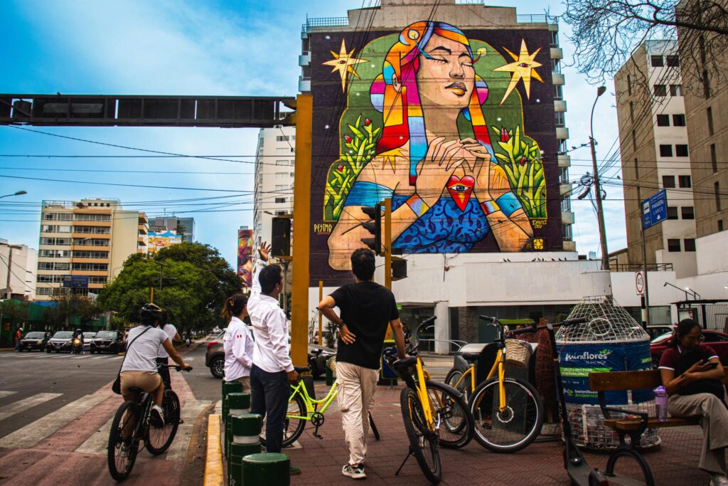 Discover Lima from a different perspective: Cycle through monumental murals, contemporary urban art, Latin American comics, Andean worldview, and Afro-Peruvian expressions.